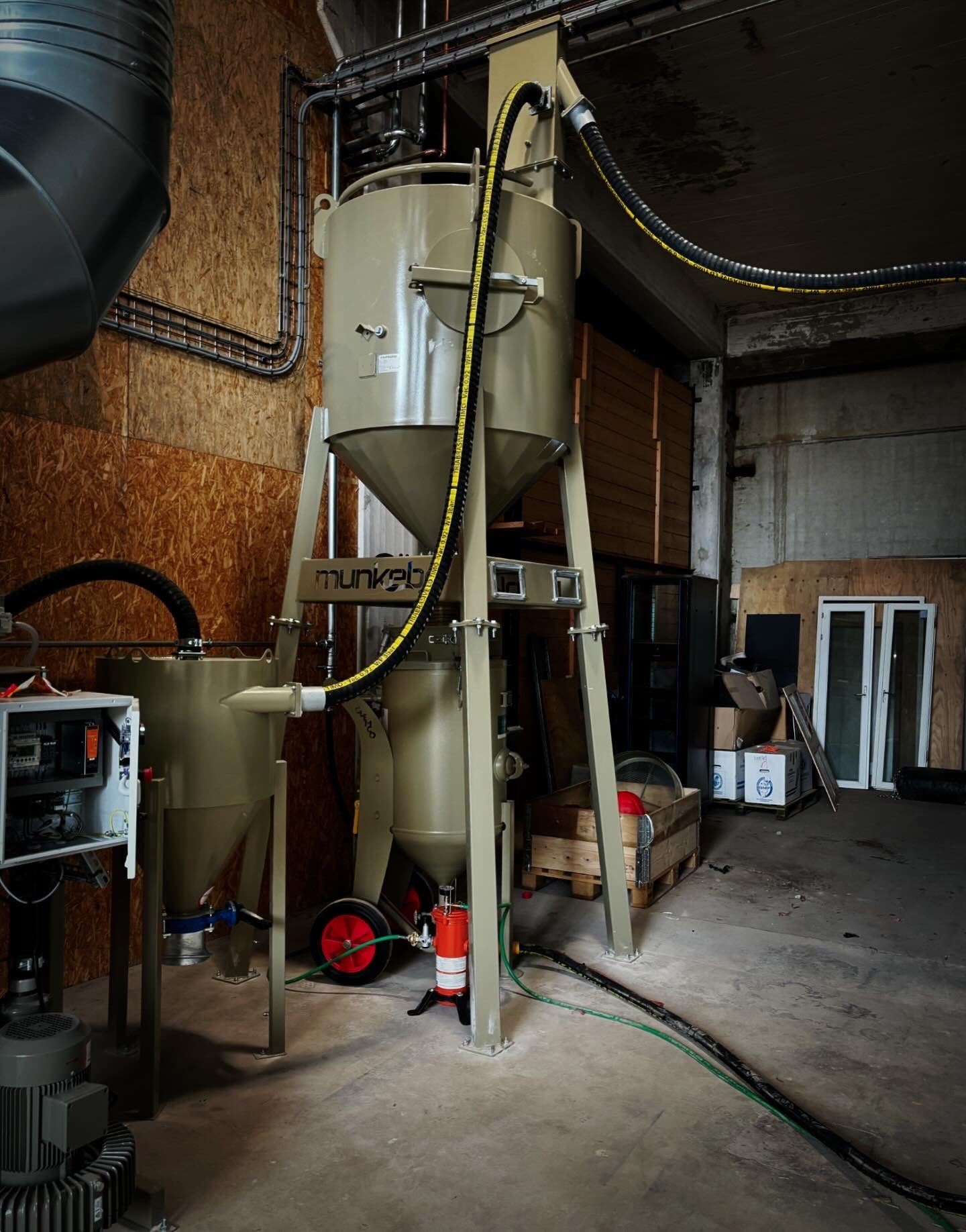 Silos finns i standardstorlekar från 100 till 18 000 liter. De mindre behållarna finns för direktmontage ovanpå standard 200 liter blästerklockor, men kan även fås fristående med manuell eller vakuumstyrd bottenventil. Efter önskemål kan vi tillverka silos för t.ex. två blästerklockor. Vid blästring med medel med hög dammbildning rekommenderar vi att man använder en cyklon mellan grovavskiljare och filterenhet.