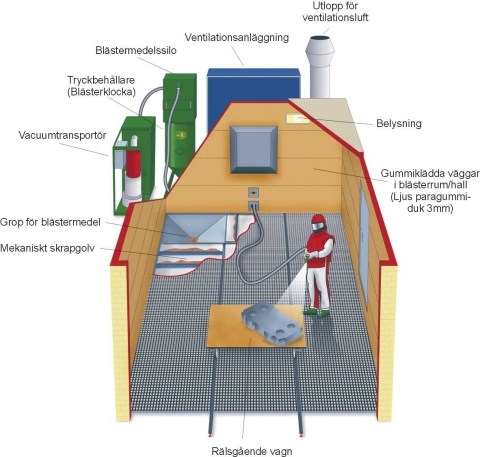Vi kan skräddarsy anläggningar och blästerhallar/rum. Allt ifrån själva anläggningen till ventilation, gallergolv, sandåtervinning samt alla utrusting mm för att blästra.