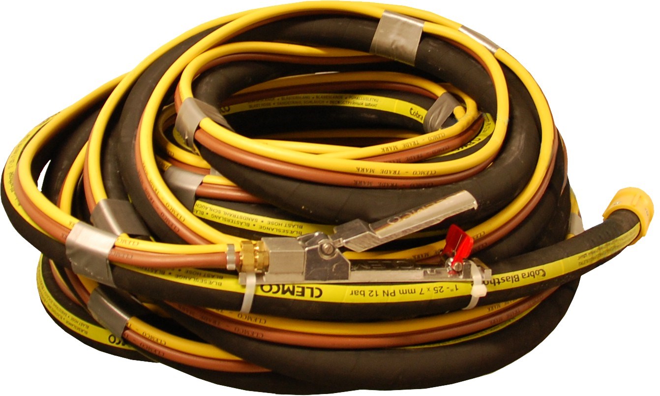 Levereras komplett med 20m slangpaket innehållande 1" blästerslang, tvillingslang, fjärrmanöverhandtag, munstyckshållare samt 8 mm munstycke.