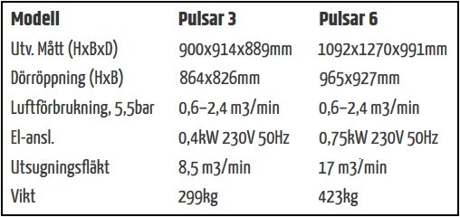 Blästerskåp Pulsar 3 och Pulsar 6