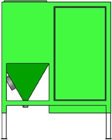 Patronfilter renas automatiskt med tryckluft samt med eftergång. Utsläppen är lägre än 5mg/m3, detta möjliggör att återleda för att spara värme alternativ hålla en låg fuktnivå i lokalen för att förhindra återrost. Dammhantering via antal bottenuttag, kan förser med transportskruv för att smidigt transportera till därav avsedd behållare eller container.