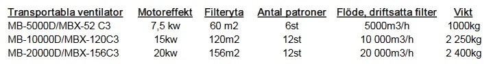 Munkebo transportabla/mobila ventilatorer är byggd som container modul. Kompakt enhet med utdragbara ben för smidig förflyttning samt bra dammhantering. Hög kapacitet för större entreprenad arbeten. Ansluts med 3st Ø 300 mm slangfästen, lämpligen till spirorör eller förstärkta slangar.