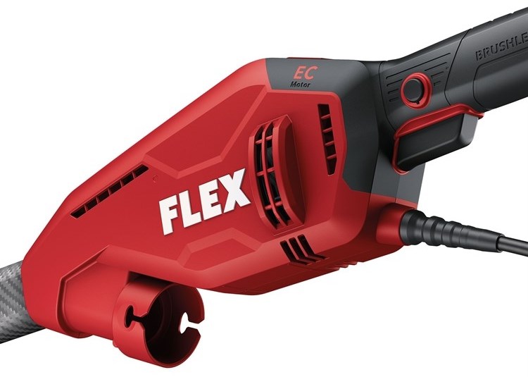 Möjlighet att ansluta för FLEX-säkerhetsdammsugare med optimerat volymflöde på styrröret med FLEX Clip-systemet, antistatisk tack vare en antistatisk sugslang. 50cm förlängningsrör finns som tillbehör och kan lätt kopplas på utan verktyg.
