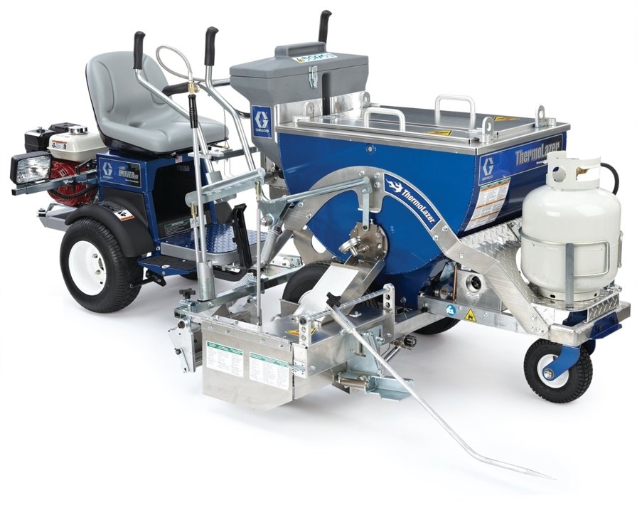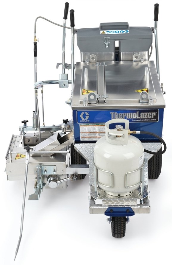 Graco ThermoLazer 300TC är ett av de mest produktiva och lättanvända termoplastiska handlinjemålarna i branschen. Systemets 135 kg materialtråg möjliggör mer linjemålning och mindre tid för påfyllning av material, medan dess EasyGlide hjulmonteringssystem gör denna enhet lika lätt att manövrera som en LineLazer.